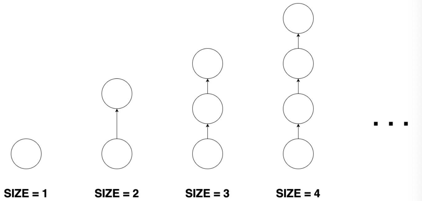 - 막대 모양 : 단방향이기 때문에 Root 노드는 들어오는 간선 수가 0개이면서 나가는 간선은 1개이고, Leaf 노드는 들어오는 간선 수가 1개이면서 나가는 간선은 0개인 경우