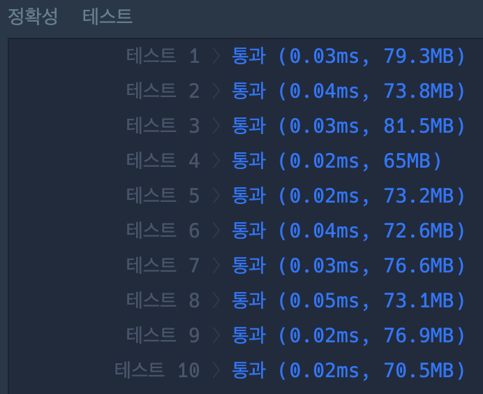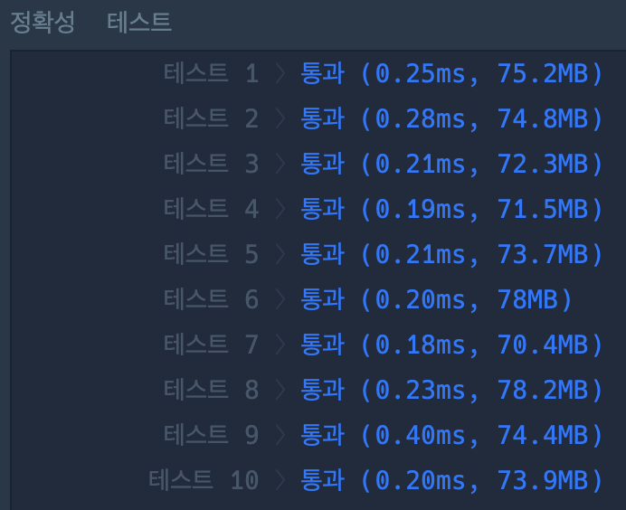 실행 시간을 비교해보면 Stack을 이용한 첫번째 코드보다 훨씬 개선된 것을 확인할 수 있었다.